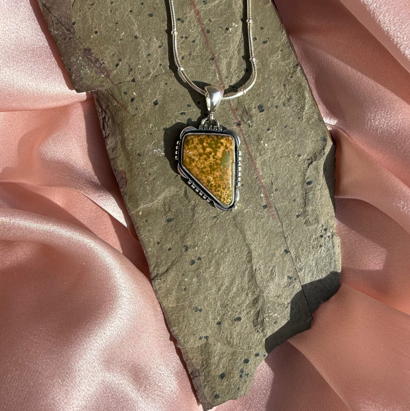 This pilot mountain turquoise always reminds me of my favorite American Kestrel, and remains a favorite variety of turquoise. Mined and made by Nevadans, this Nevada-shaped stone is about nickel sized and made with all sterling silver materials including a hand-sawed sterling border. It’s one of a kind, available now.